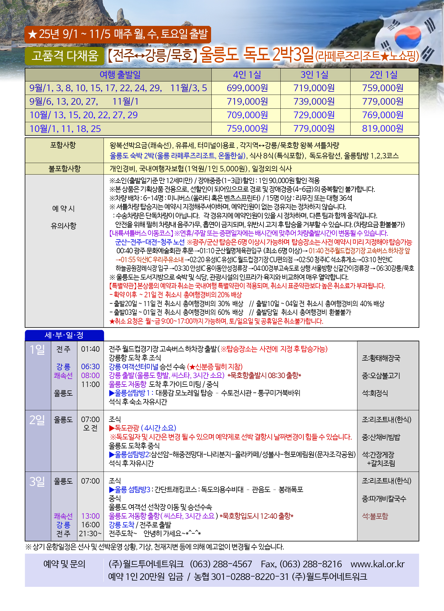 【특별약관】 본상품의 예약과 취소는 국내여행 특별약관이 적용되며, 취소시 표준약관보다 높은 취소료가 부과됩니다.
