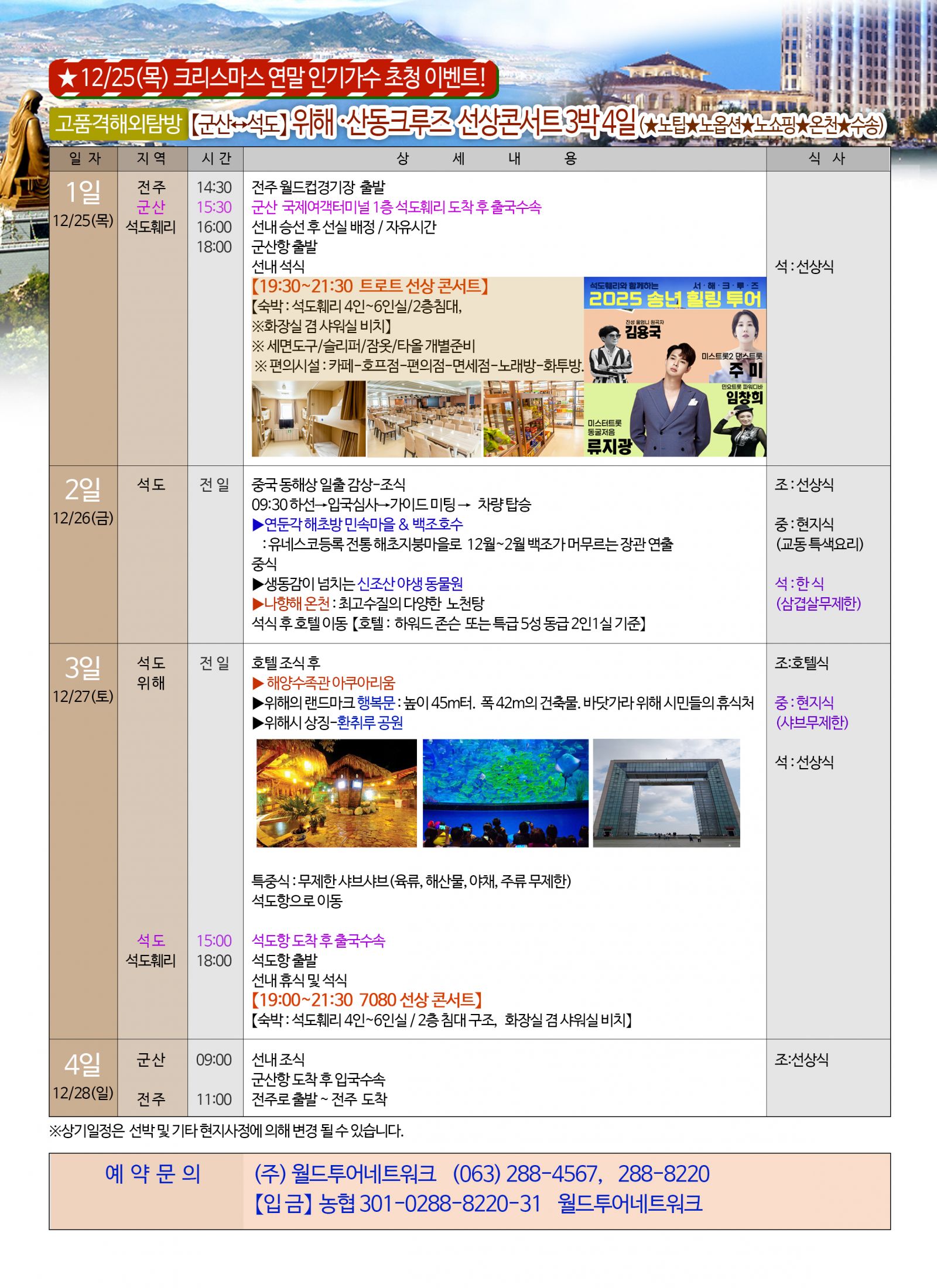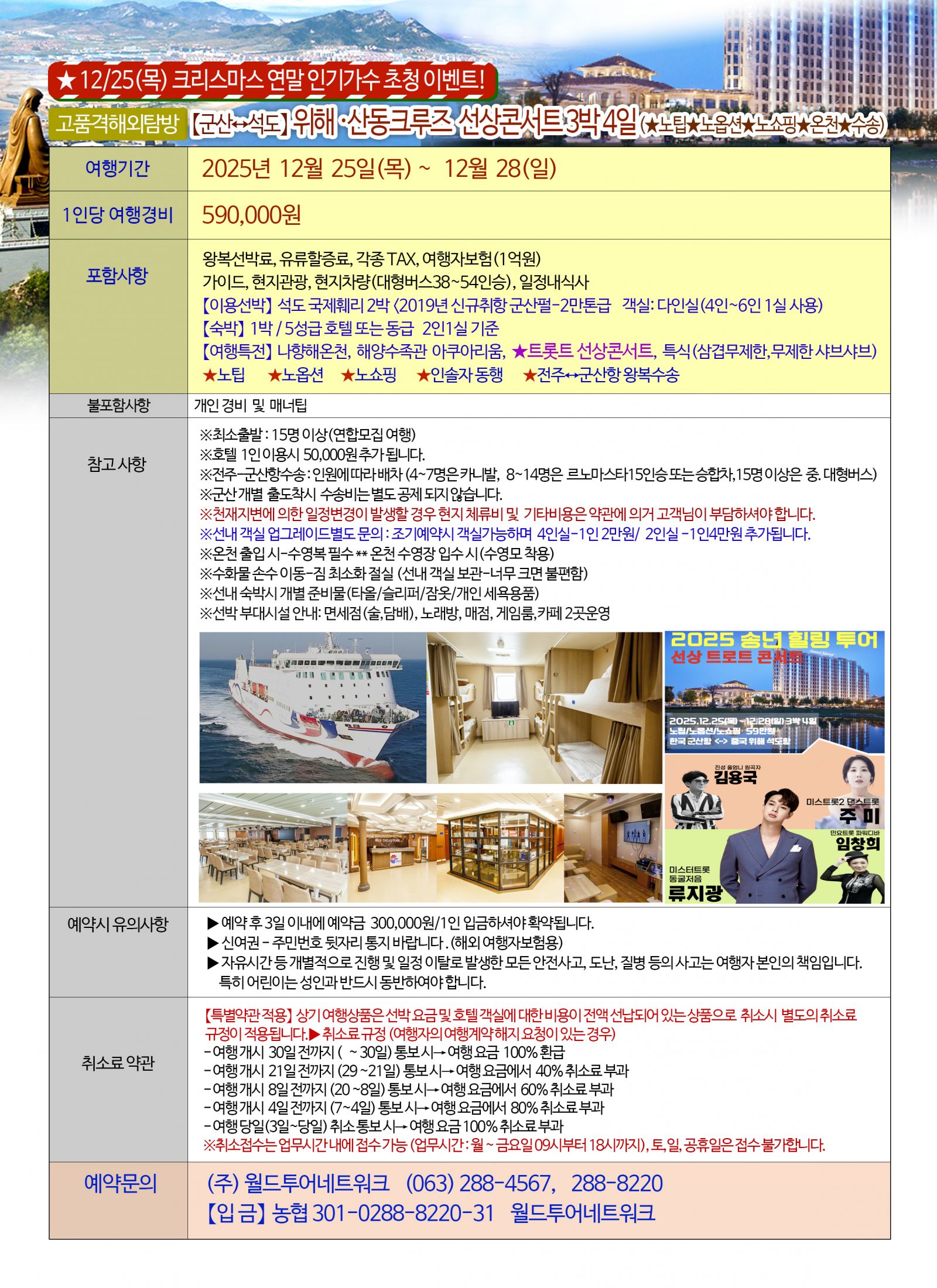 25년 12/25[석도크루즈] 석도 온천 크루즈 초청가수이벤트 3박4일