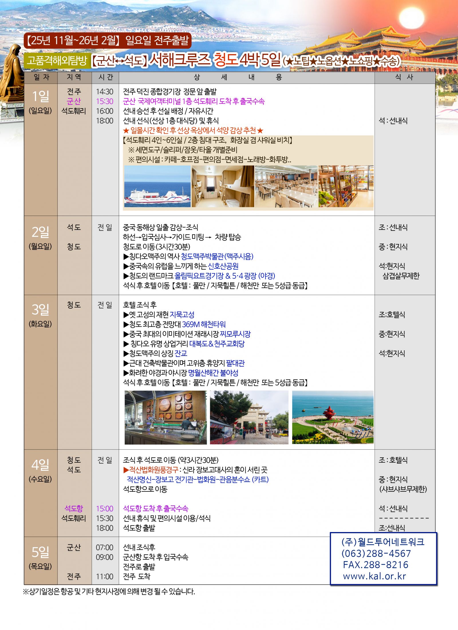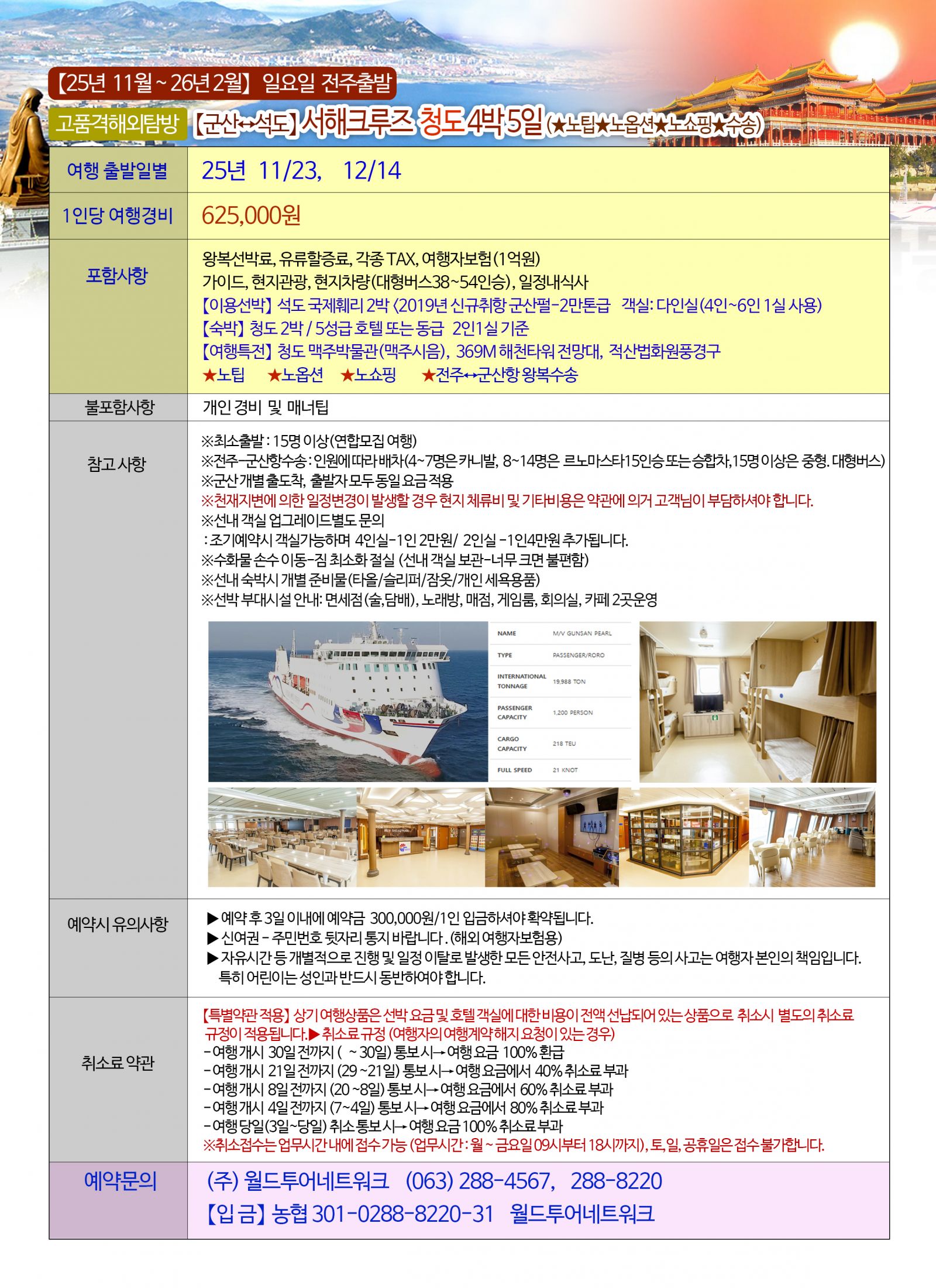 25년 11월~26년02월 일요일[서해크루즈] 청도 4박 5일