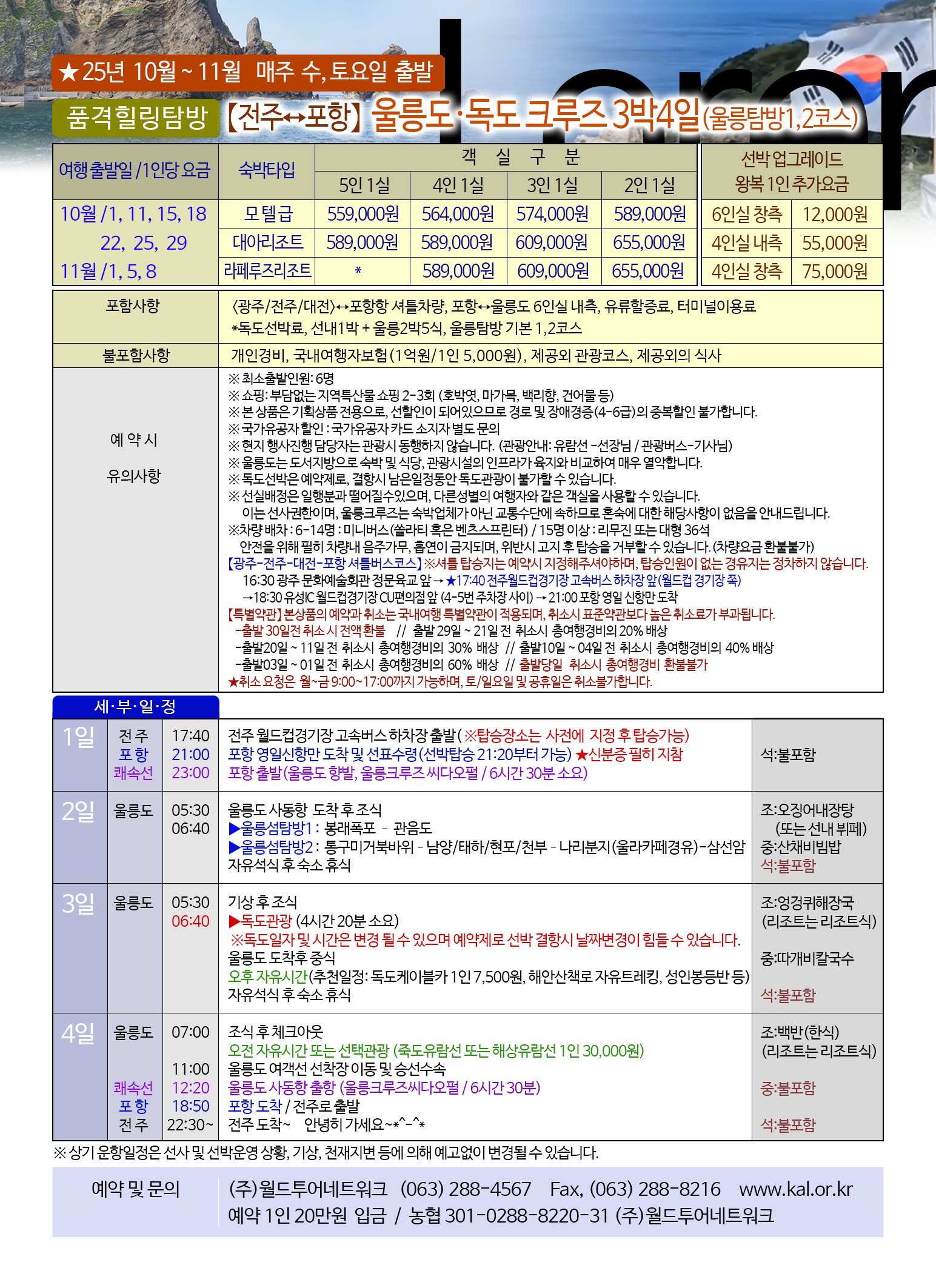 【특별약관】 본상품의 예약과 취소는 국내여행 특별약관이 적용되며, 취소시 표준약관보다 높은 취소료가 부과됩니다.
